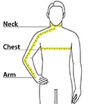 | Arm | 30 1/2 | 32 | 34 | 35 | 36 1/2 | 37 1/2 | 38 1/2 | 39 1/2 |